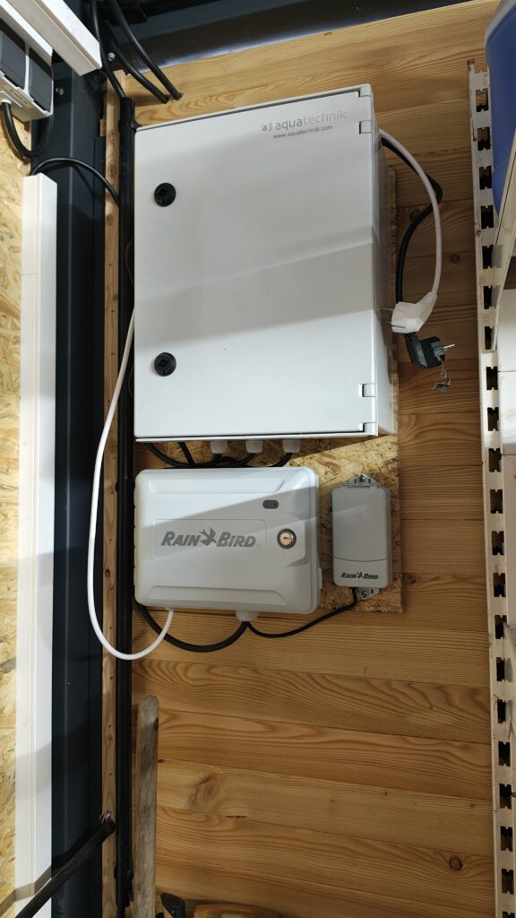 2 Bewässerungskreise (1 mal Rollrasen, 1 mal Tropf)